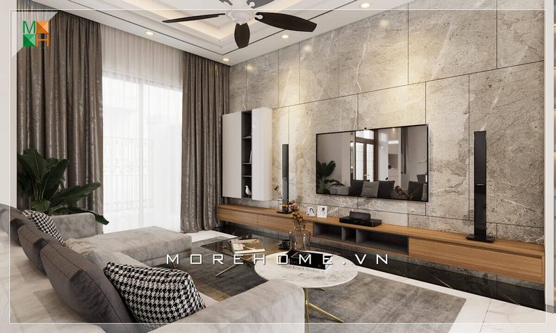 Thiết kế nội thất hiện đại và sang trọng cho không gian phòng khách gần cửa sổ lớn của các căn hộ, nhà phố, biệt thự là một gợi ý tuyệt vời.